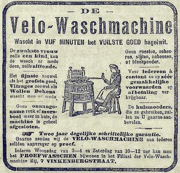 Met die slogan maakt fabrikant van was- en wringmachines Vélo rond. Het bedrijf was de eerste wasmachinefabrikant van Nederland – en de laatste. Het pand aan de Lange Delft 1was één van de 1winkels waarmee Velo zijn wasmachines zelf verkocht. VELO elektrische wasmachine met wringer, dompelaar, deksel en handleiding. Heb je voorbeelden van oude handbediende wasmachines met.
