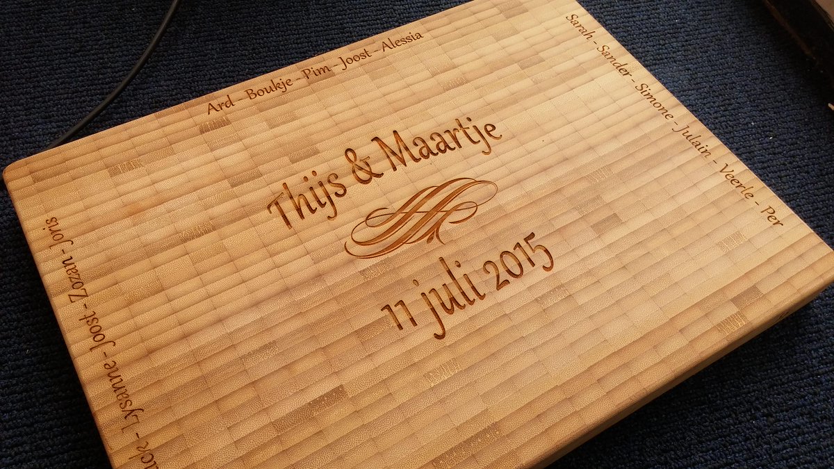 Een gegraveerde snijplank van hout is een mooi en persoonlijk cadeau. Laat uw houten snijplank door ons graveren met een door uzelf gekozen tekst. Bijvoorbeeld wanneer u iemand een origineel verjaardagscadeau, kerstcadeau, . Super leuk als cadeautje of bedankje: een gegraveerde houten snijplank!