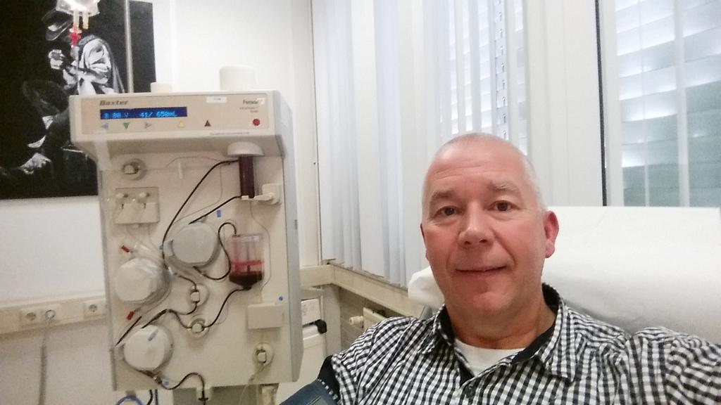 Galgkade 3; 31KN Vlaardingen, Netherlands. Marko Meuer feeling satisfied at Sanquin Bloedbank Vlaardingen. Sanquin Bloedbank Vlaardingen, Vlaardingen.