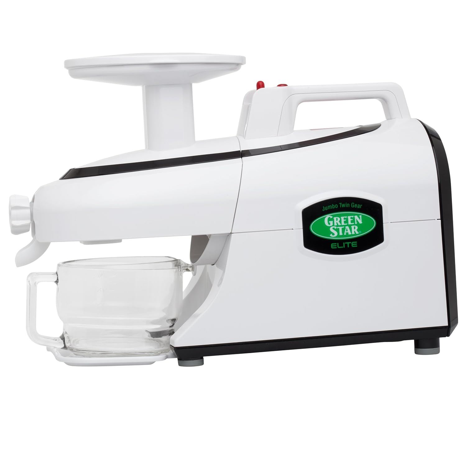 Green Star Elite GSE-50Jumbo Twin Gear Juice Extractor. Greenstar Elite GSE-5Twin gear Juicer. What's great about the Green Star Elite is the Twin-Gear juicing system which produces more juice and and maximizes the nutritional value of the juice. This juicer uses dual gears to deliver a crazy yield on leafy greens. We find out in our Green Star Elite Juicer review.