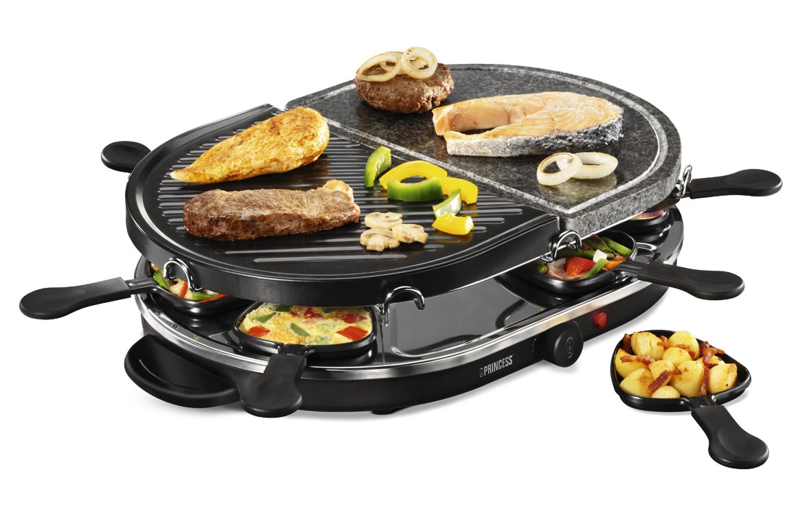 Bestel de PRINCESS 1628Raclette Stone Grill Party nu bij Media Markt. De Princess Raclette Stone Grill Party is een combinatie van een raclette-, een gourmet, een steengrill en een bakplaat. De Family Stone Raclette Set Combinatie van een raclette- en steengrillset in één. De 1628Raclette Stone Grill Party van Princess heeft een vermogen van 14Watt, pannetjes, anitaanbaklaag, een grillplaat en steengrill.